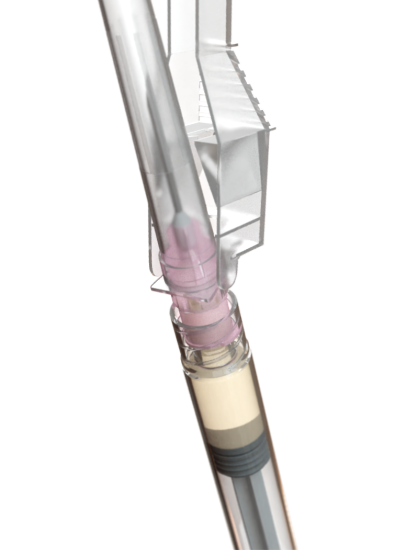 Without bending the syringe system, gently and slowly go back and forth for 60 cycles until obtaining a homogeneous and viscous solution.†